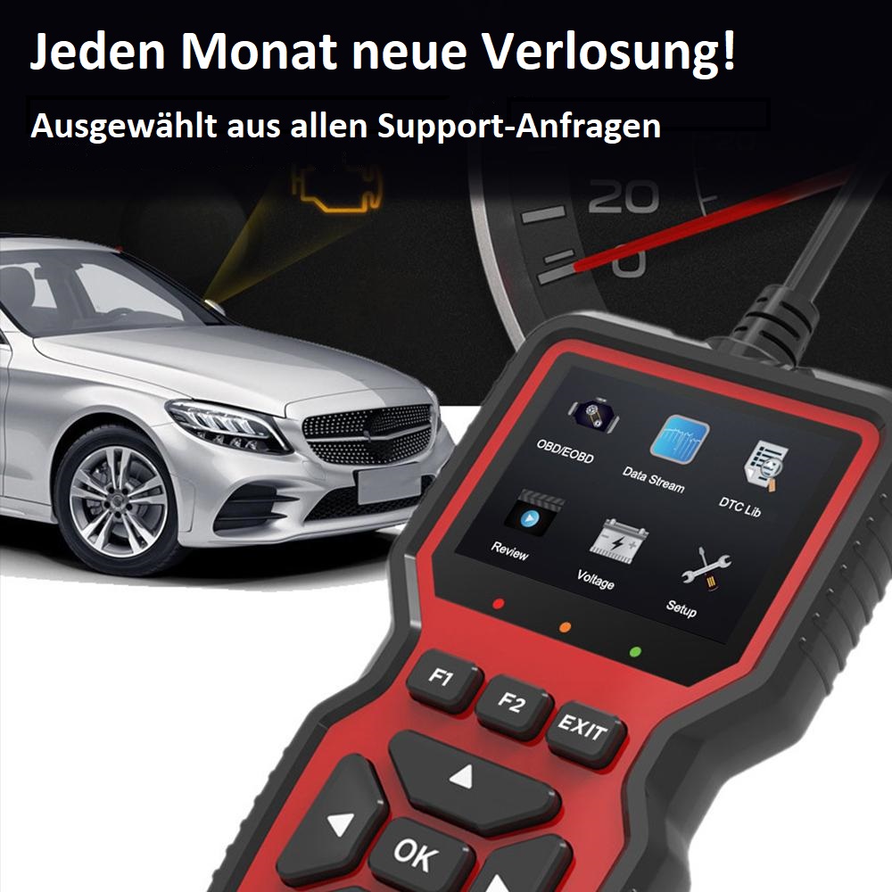 Der kurioseste, ausgefallenste oder schwierigste Fall wird belohnt! Monatlich und mit einem universalen OBD2-Handgerät. Als kleines Dankeschön, dass es uns nicht langweilig wird.